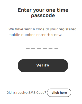 - Enter the 6-digit one-time passcode (OTP) sent to your mobile phone.