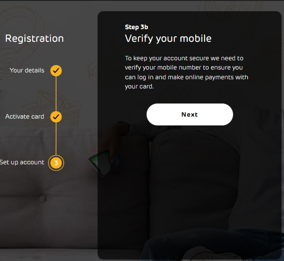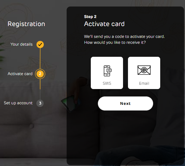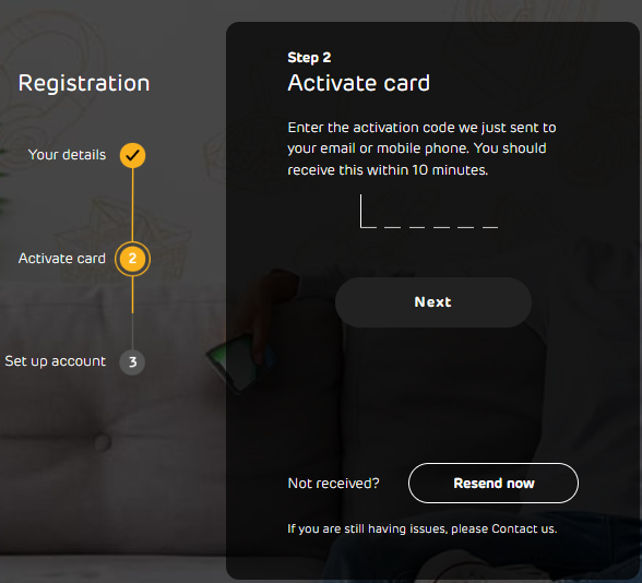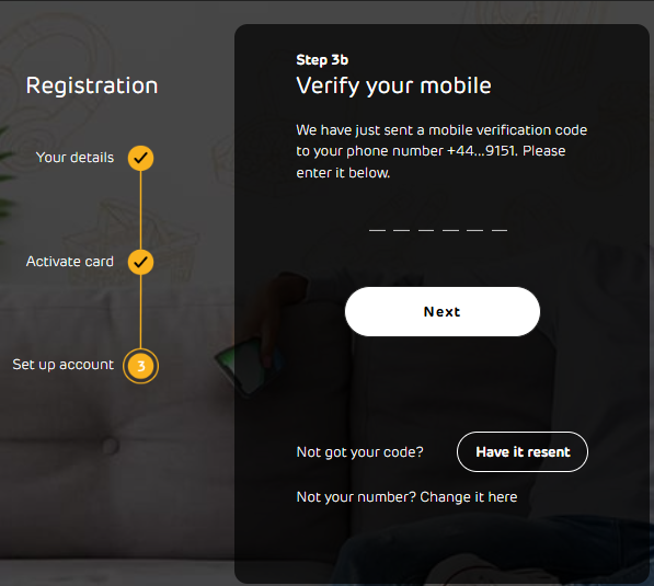 Similar to the activation code, you’ll receive an SMS one-time passcode. Enter this code to verify your details.