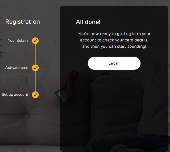 - If you received your initial activation code by SMS, your registration is complete and your card is ready to use.